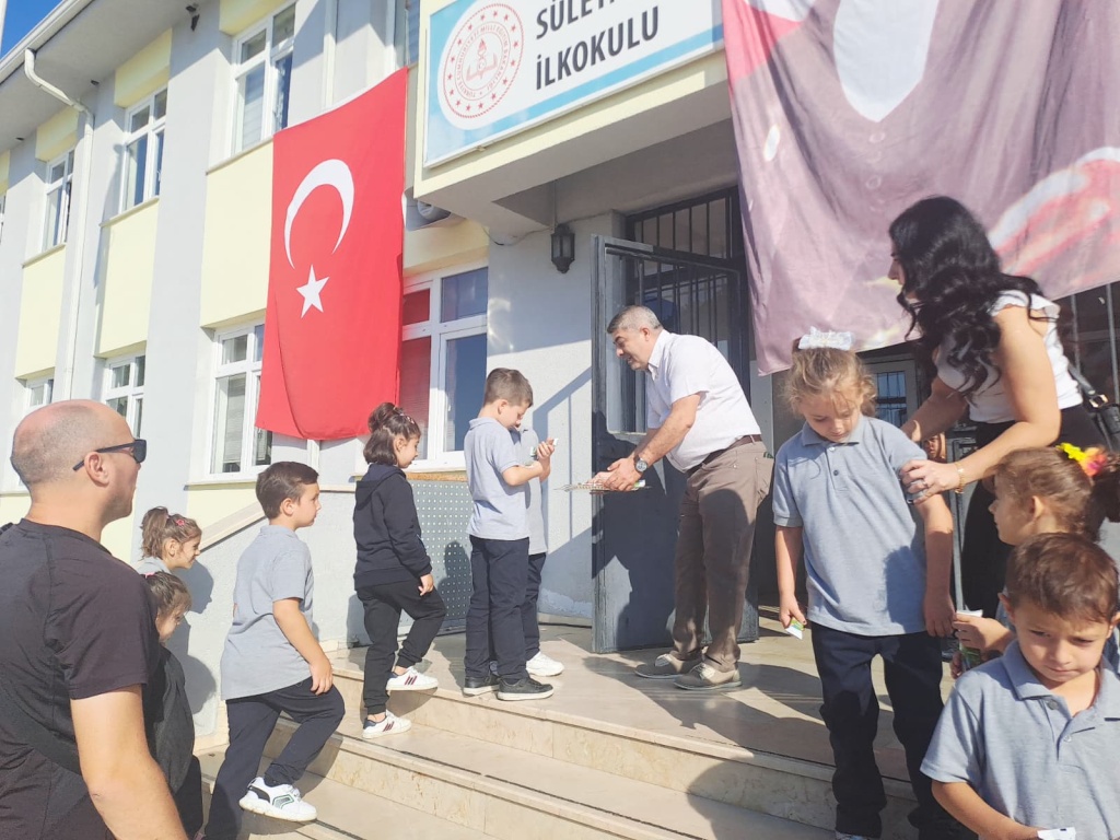 Müdürümüz Vedat Köse, okula yeni başlayan 1. sınıf öğrencilerimize ikramda bulunarak, öğretmenleri Yıldız Çetin ile birlikte tüm sınıfa başarı ve hayırlı bir eğitim-öğretim yılı dileklerinde bulundu. Öğrencilerimiz heyecanlı ama bir o kadar da mutlu anlar yaşadılar.